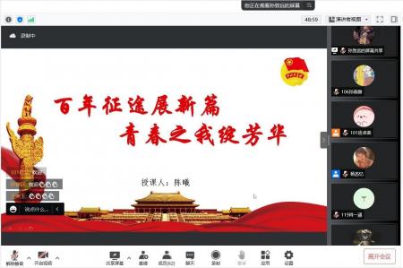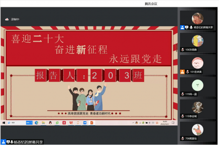 4月27日下午,20级经济统计3班团支部“喜迎二十大、永远跟党走、奋进新征程”主题团日活动于线上举行,统计18禁直播团委书记陈曦参与并讲授“百年征途展新篇,青春之我绽芳华”团课,支部书记杨忞忆主持。