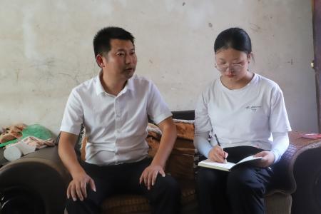 图为江西18禁直播 统计18禁直播学子在田心村对田心村党支部书记王孟进行采访。