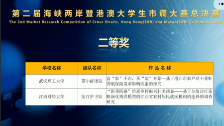 8月21日,中国商业统计学会主办的“2022年第二届海峡两岸暨港澳地区大学生市调大赛”总决赛在线上举行,我校队伍作为中国大陆地区的优秀代表队之一,在此次比赛中荣获二等奖。