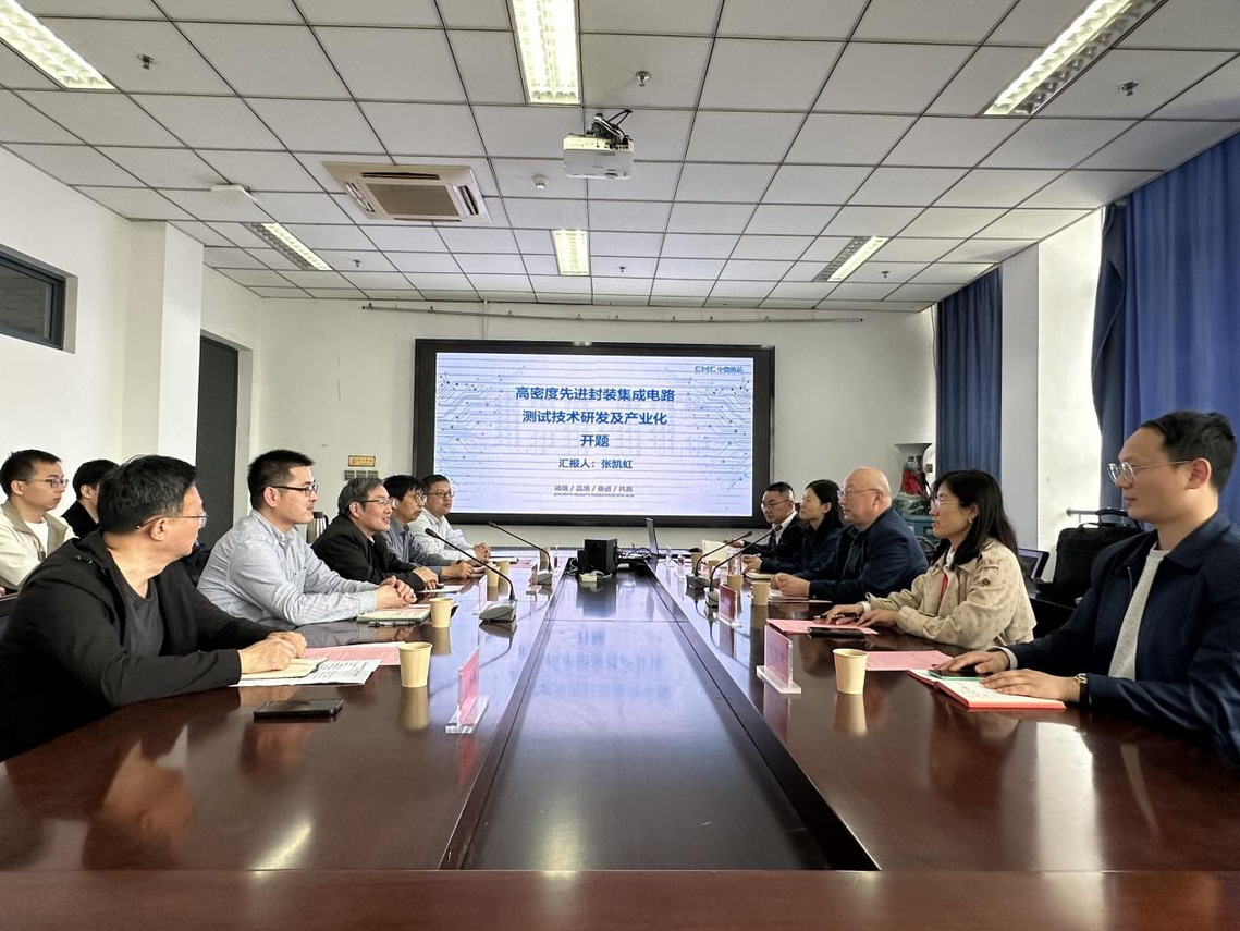 4月11日下午,18禁直播 与无锡中微腾芯电子有限公司举行江苏省科技成果转化项目《高密度先进封装集成电路测试技术研发及产业化》的开题会议。中国电科首席科学家于宗光特邀参加会议。
