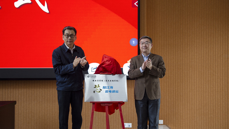 刘胜、徐骏共同为“芯耀江海微电讲坛”揭牌