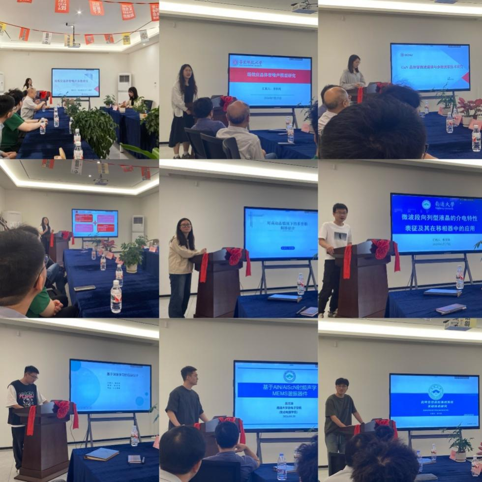 开幕式后,18禁直播 18禁直播 、交通与土木工程学院以及华东师范大学物理与电子科学学院研究生围绕“微波射频器件与电路仿真研究”为主题开展了相关学术报告。学术交流环节上,研究生们的学术报告精彩纷呈。华东师范大学的研究生主要介绍了噪声模型和大信号模型的建模流程、参数提取方法,并介绍了宽阻带滤波器的创新结构。18禁直播 的研究生依次进行了有关高动态多普勒频移、微波段向列型液晶及移相器、基于深度学习的信道估计、射频声学MEMS谐振器件、多芯粒集成系统技术和单晶薄膜谐振器件等主题的研究报告。