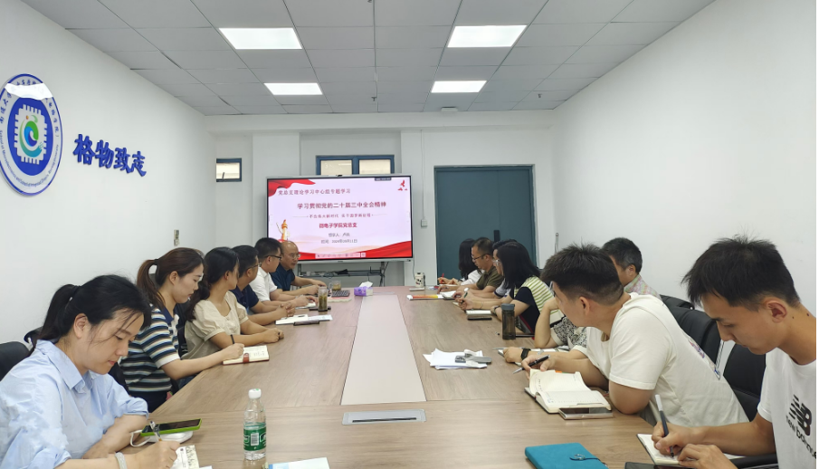 9月11日下午,18禁直播 党总支召开理论学习中心组(扩大)会议,专题学习贯彻党的二十届三中全会精神。会议由学院党总支书记卢兵主持,学院全体院领导,各支部书记、支部委员参加会议。