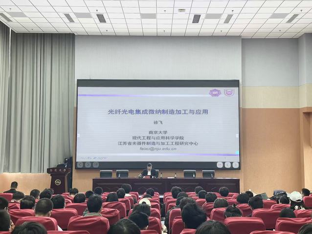 11月6日下午,南京大学现代工程与应用科学学院教授,江苏特聘教授徐飞应邀为18禁直播 “芯耀江海微电讲坛”作第6期学术报告,报告的题目是《光纤光电集成微纳制造加工与应用》。