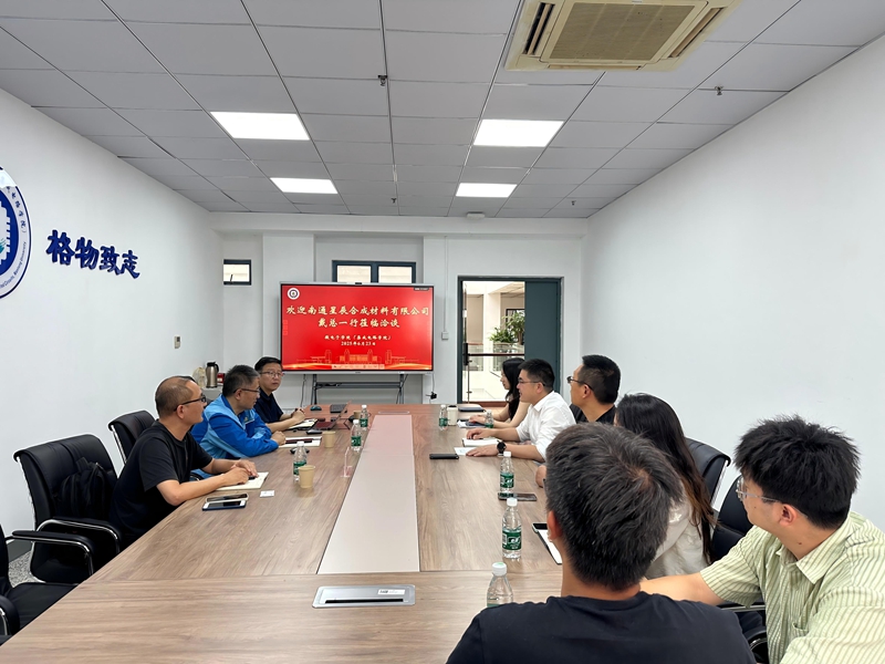 6月23日南通星辰合成材料有限公司戴伍国、茅大联、张翔羽一行来院访问交流,洽谈合作事宜。学院副院长(主持工作)赵继聪主持会议。