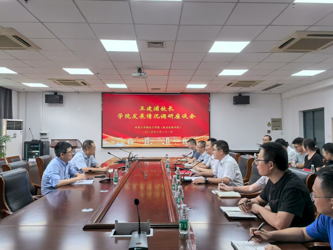 王建浦听取了学院工作汇报,对学院近年来建设发展取得的成绩和师生精神面貌给予充分肯定,并详细了解当前学院在发展进程中面临的问题与困难。他指出,学院发展要想取得更多、更大的突破,一定要积极响应国家重要领域战略发展需求,紧紧把握当前发展大势,锚定目标任务,科学谋划、锐意创新、真抓实干,不断凝练特色亮点,打造更多标志性成果。王建浦就学院今后工作开展提出了三点要求。一是要持续强基固本,优化师资队伍。学院既要大力引进高层次领军人才,也要重视现有人才的培养,要建立和完善学院人才激励培育机制,用心用情服务人才事业发展。二是要坚持创新驱动,提升学科实力。要以申报博士点为契机,充分整合资源,凝练学科方向,强化学科特色,充分发挥学科建设引领作用。三是要重视平台建设,优化资源配置。学院要对现有的科研平台进行整合和优化,发挥更好效能。要深化对外合作,积极拓展资源,建设更多具有学院特色的科研平台。学校将结合学院的发展实际,在资源投入、高层次人才引进、平台建设等方面给予支持,推进学院实现高质量发展。