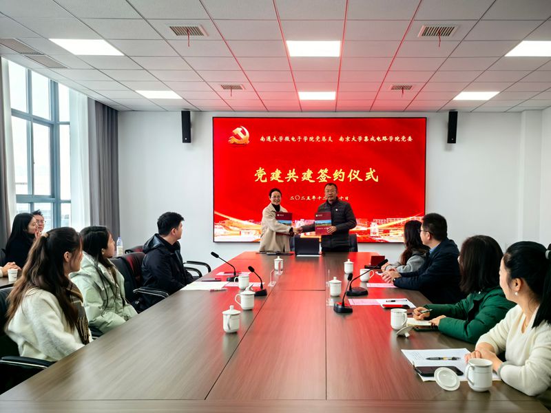 12月20日上午,18禁直播 18禁直播 党总支与南京大学集成电路学院党委党建共建签约仪式在我校举行。南京大学集成电路学院党委副书记施国卿,18禁直播 副院长(主持工作)赵继聪出席。仪式由18禁直播 党总支副书记、副院长卢玉军主持。