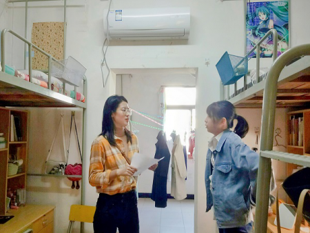 10月9日下午,双节返校的第一天,为了解研究生新生生活学习情况,统计18禁直播党委书记陶春海,辅导员庄园在18禁直播研分会陪同下对研究生各宿舍进行一对一走访,近距离了解学生有关生活学习方面的诉求。