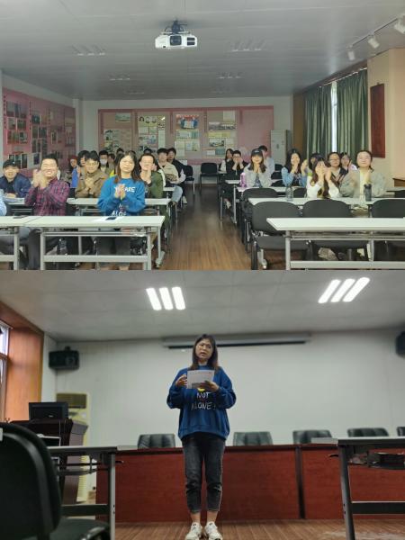 会议第一阶段,宜梦莹就“如何增强服务意识、争当优秀研分会骨干”做了专题报告,主要从如何发挥研分会骨干的模范领头作用,服务同学、服务老师、服务学校,充分发挥自身的能力等方面做了重要阐述,并与研分会骨干进行积极互动。