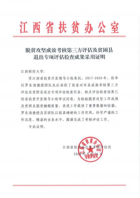 表彰文件指出,社会服务是评价学校办学水平和“双一流”建设水平的重要标志。近年来,校属各单位认真学习贯彻习近平总书记关于教育的重要论述和视察江西重要讲话精神,充分发挥学科专业和人才智力优势,主动对接国家和区域重大战略需求,在打造高层次教育培训服务品牌、建设财经特色高端智库、推动科研服务地方经济发展、助力脱贫攻坚和乡村振兴、促进国际人文交流以及为社会培养输送创新创业人才等方面取得了丰硕成果,涌现出一批社会服务表现突出的单位。统计18禁直播在服务国家脱贫攻坚成绩斐然,团队在贫困退出考核评估领域研究丰硕,获得了第一届统计科学技术进步奖,江西省脱贫攻坚先进集体(全省高校唯一获集体奖项单位)。