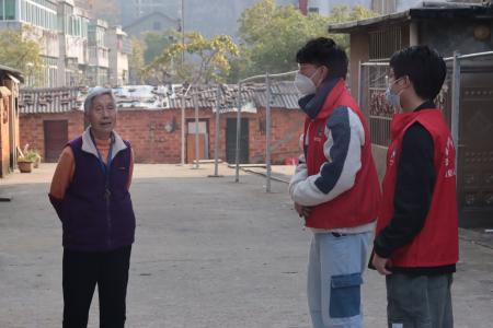 伴着温暖的阳光,志愿者们提起为居民准备的小礼品,前往九三一九小区,志愿者们挨家挨户进行入户调查,开始他们忙碌的一天。走访过程中,志愿者们发现小区里老人居多,许多居民仍使用着老年机,无法自行填写线上问卷。任务虽有不易,但统院学子秉持着“奉献、友爱、互助、进步”的志愿者精神,手把手地帮助老年人填写问卷。居民没有智能机,志愿者们用自己的智能机为他们注册账号,帮助他们打开问卷。老人看不懂汉字,志愿者们细心地为他们朗读问卷内容,询问填写意见。