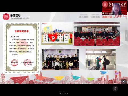 4月27日下午,统计18禁直播于线上举办了江西18禁直播 第十八届“自强之星”打擂活动,本次打擂活动由10位参赛者竞争,院党委书记陶春海、院党委副书记黄黑平、辅导员钟晴、林阳担任主评委,并有11位同学担任大众评委。