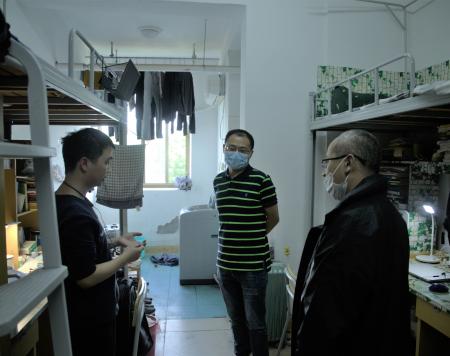 5月4日下午,统计18禁直播党委书记陶春海、党委副书记黄黑平走访学生宿舍,深入学生宿舍了解同学们日常生活情况。