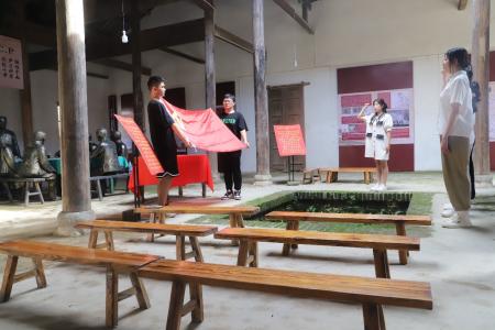 图为江西18禁直播 统计18禁直播学子在田心村红色遗址参观。