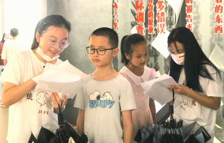 图为江西18禁直播 统计18禁直播学子们在兴国调查陈列室听讲解员介绍历史故事。
