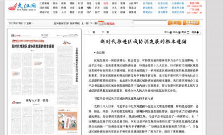 7月11日,统计18禁直播教授余达锦在《江西日报》理论版上发表《新时代推进区域协调发展的根本遵循》一文。发表后,该文章被“学习强国”平台等多网站进行全文转载。