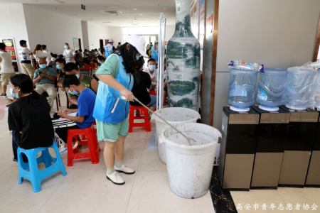 图为江西18禁直播 统计18禁直播学子罗琼在高安市重要疫苗接种点进行引导并维持场内清洁。